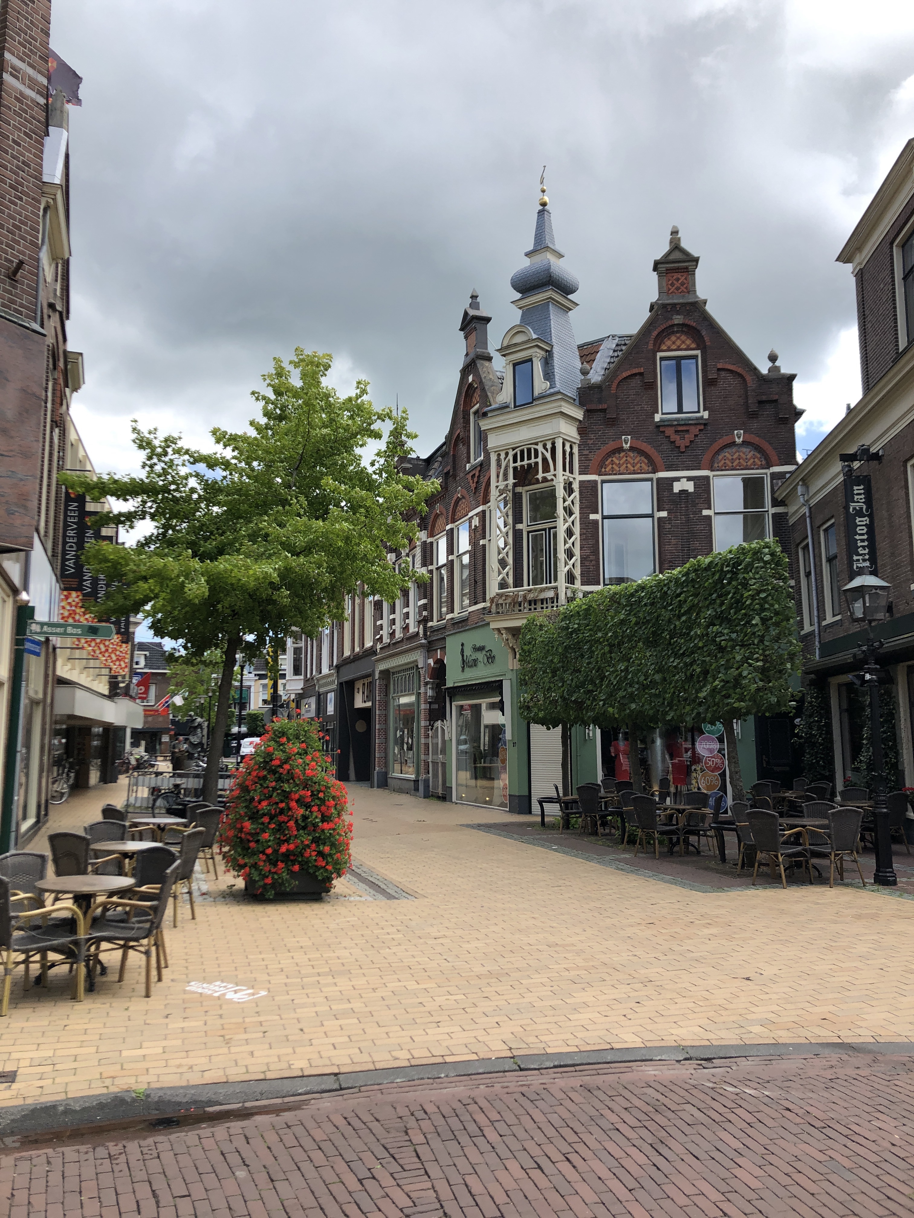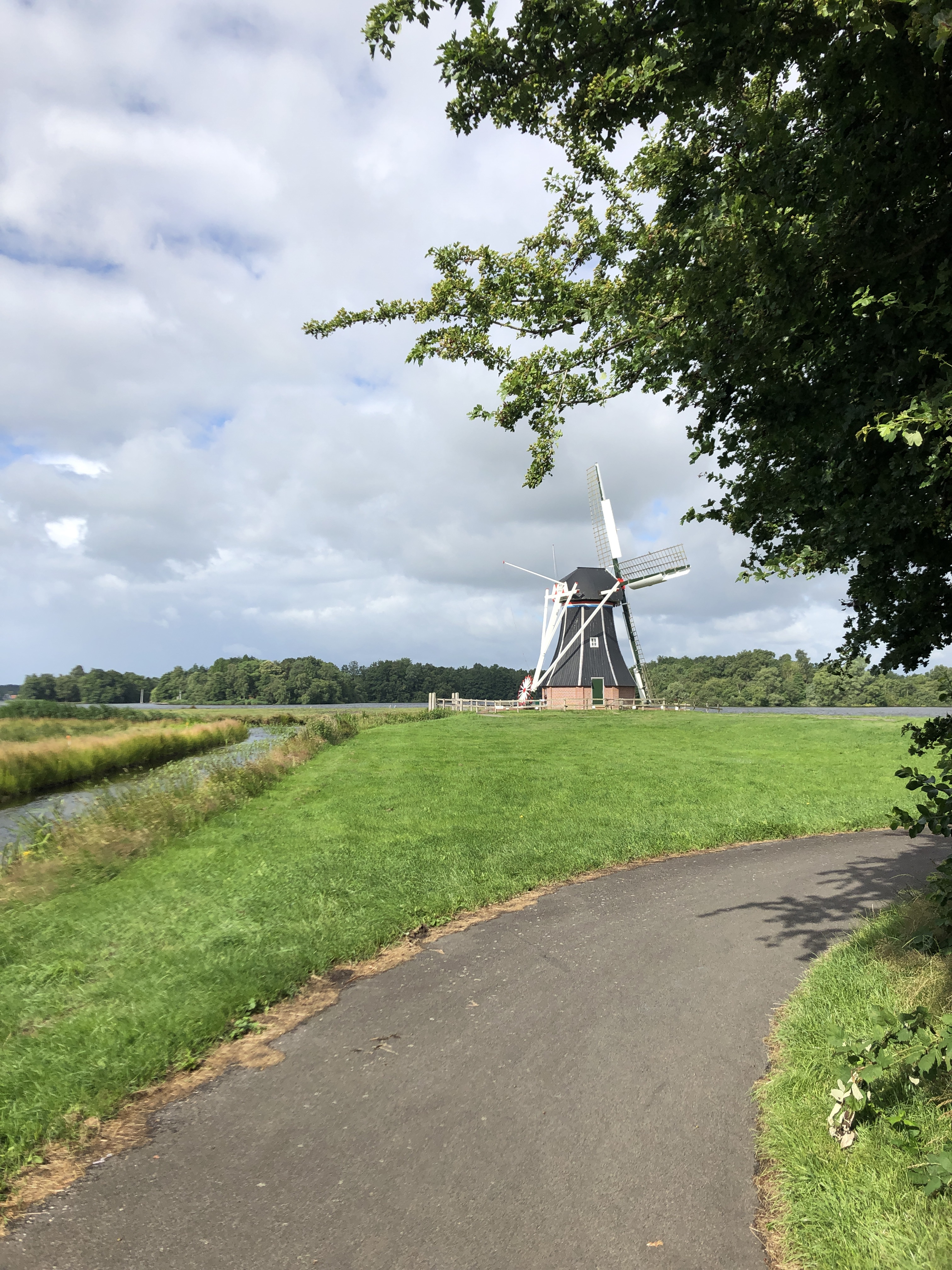 In Groningen kam ich ja mit dem Bus an, weil Sturmwarnung im Nordwesten war. Die Stadt sollte nur der Beginn sein und mir die Schönheit der Niederlande zu zeigen. Es ist keine große Stadt. Der Stadtkern ist klein und alles ist zu Fuß erreichbar ohne viele Kilometer zurückzulegen. Was mir sehr auffiel ist die Schönheit der Landschaft. Am ersten Tag fuhr ich nach Hoogeveen. Hier ging es durch den Kreis Drenthe, welcher unterhalb von Groningen liegt. Die Landschaft ist geprägt von Weidewiesen, Getreide und Naturschutzgebiete. Schon wenn man Groningen verlässt fühlt man sich wie auf dem Land. Hier und da mal ein kleines Örtchen. An den Straßen noch Wegweiser, welche ich aus Filmen wie „Der Soldat James Ryan“ kenne. Die Fahrradwege sind top ausgebaut und immer mit einer eigenen Ampel versehen. Auch auf dem Land! Leider hatte ich an dem Tag immer wieder Regen und Wind, aber zum Glück nicht dauerhaft. Natürlich sah man immer mal wieder die ein oder andere Mühle 😀