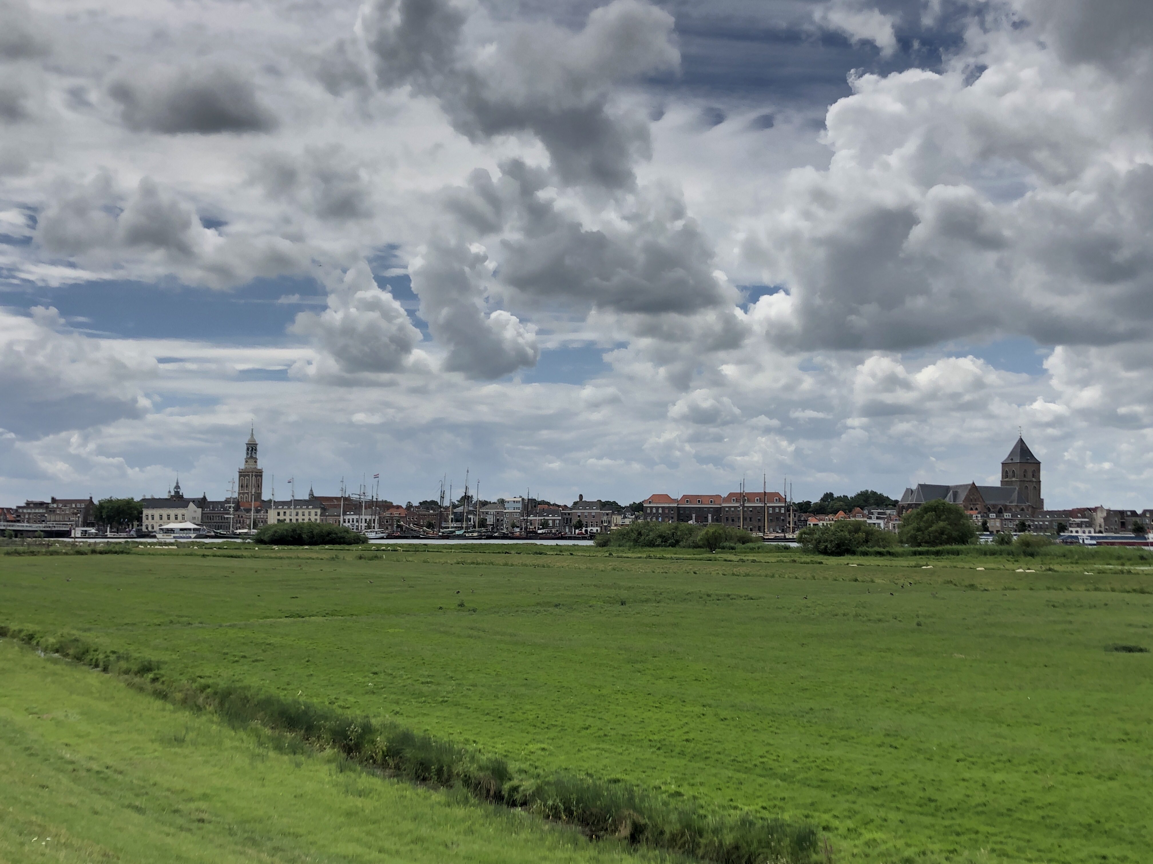 Kurz vor Hoogeeven fuhr ich durch ein Naturreservat mit Seen, Wiesen und Wäldern. Leider regnete es, sonst hätte ich es mehr genossen, aber es war total schön dort! Den Abend durfte ich bei Erik und seiner Frau übernachten. Es gab ein leckeres Essen und wir tauschten uns über alle Geschichten aus. Er hat auch schon echt schöne Touren erlebt. Da er für die Region Drenthe eine Radtour erstellt hat, half er mir die Tour nach Almere zu planen, wo ich bei Edwin und seiner Familie schlafen werde. Der darauffolgende Tag hatte auch wieder einige Schauer zu bieten. Als der größte Schauer kam, wollte ich mir gerade einen Kaffee holen in einer Bibliothek in Zwartsluis. Daraus wurden 2 und Ich durfte auch innen etwas Essen, somit konnte ich dem Regen zuschauen 😉 Es gibt schlimmeres 😉 Das nächste Highlight war die Hansestadt Kampen. Eine richtige schöne alte Stadt! Ich konnte die Aussicht auf die Promenade an der Ijssel beim reinfahren genießen. 🙂 Hinter Kampen ging es dann über eine Brücke nach Flevoland. Ein großer Teil hiervon ist eine künstliche Insel, die im 20. Jahrhundert aus dem Ijsselmeer angelegt wurde. Es ging an der Bundesstraße entlang nach Lelystad und von dort aus entlang am Markermeer, welches durch einen Deich vom Ijsselmeer getrennt ist, nach Almere. Rechts war das Wasser und links ein Naturschutzgebiet. Ich habe zwar mit dem Wind zu kämpfen gehabt, aber es sehr genossen! In Almere ging der Akku meines Garmin leer und ich musste die Adresse von Edwin mit meinem Handy herausfinden. Es war anstrengend, aber ich habe es geschafft, wenn Sie auch schon gegessen hatten… Der Abend war schön. Ich durfte in seinem Büro arbeiten, welches erst eines wurde durch das Arbeiten im Homeoffice seid Corona. Es gab einen sehr leckeren Apfelkuchen, welcher einer der Söhne gemacht hat! Ich bekam am nächsten Tag das letzte Stück mit! 🙂