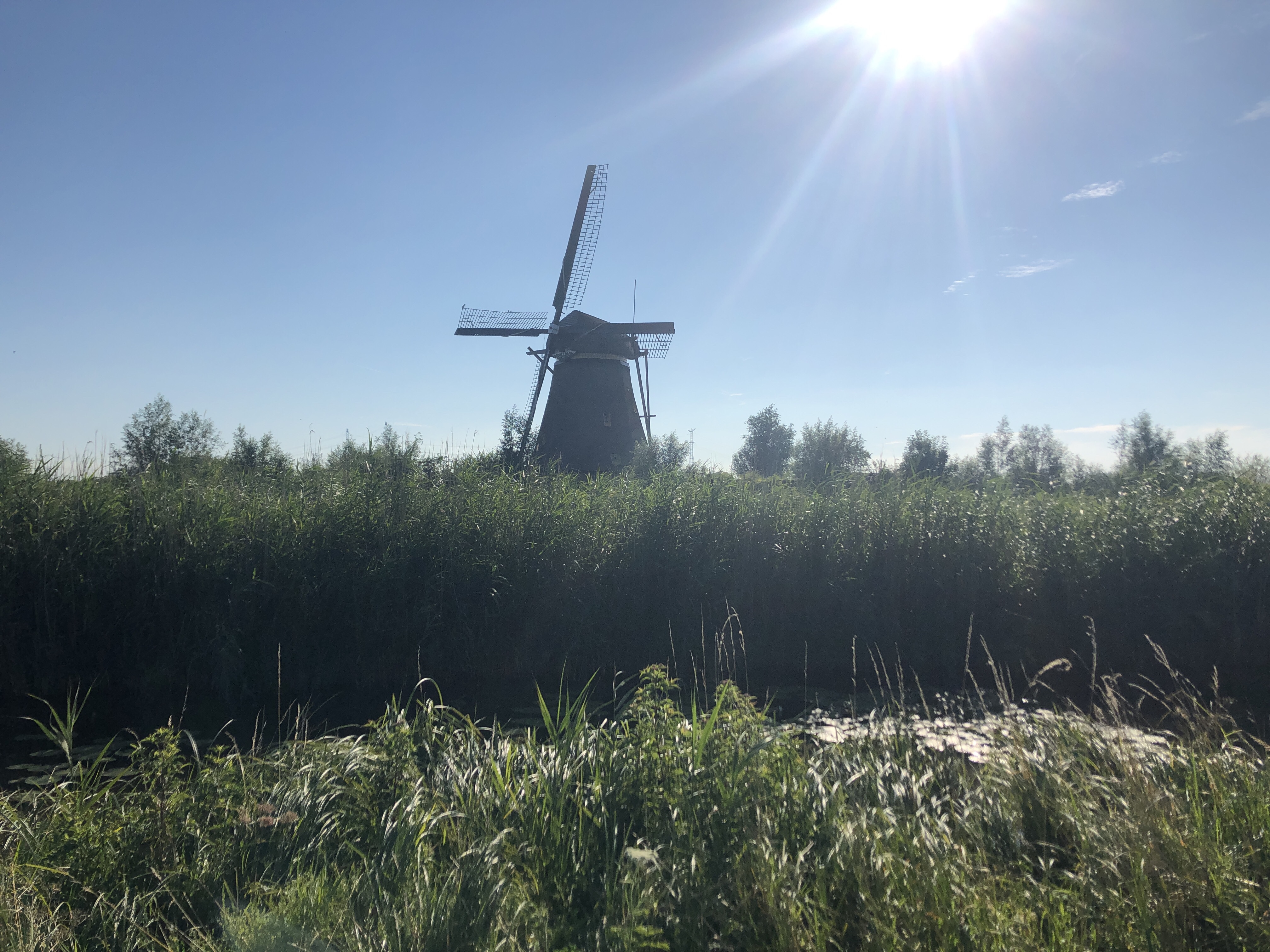 Der nächste Tag (Montag) war der letzte komplette auf niederländischem Boden. Der Tag wurde wie erwartet durch das Rhein- und das Maasdelta bestimmt. Speziell an der Maas war es wundervoll mit dem Fahrrad entlang zu fahren. Ich musste oft auf Fähren setzen, aber dafür konnte ich die schöne Natur genießen! Das Highlight waren natürlich die Windmühlen von Kinderdjik!!! Auf 3km hat man sehr viele Windmühlen links und rechts. Es ist eines der Highlights in Niederlande und auch auf meiner Tour! Der Tag war nicht verregnet und ich konnte es wirklich in vollen Zügen genießen! Die Landschaft ist dort wie gesagt einfach toll und ich war froh mich gegen die Städte Breda, Tilburg und Eindhoven entschieden zu haben. Der Abend bei Ruud und seiner Frau war toll. Es gab ein leckeres Abendessen mit einem Eis zum Schluss und wir saßen bis 22 Uhr draußen und unterhielten uns. Er hat Parkinson und fährt mit einer Art Trike durch Europa um dort mit anderen Organisationen und Ländern ins Gespräch zu kommen. Dabei wird er durch Spenden unterstützt. Finde ich sehr eindrucksvoll, vor allem mit Ende 50 so etwas zu machen. Er brennt dafür und daher wird es so lange machen wie es geht. Ich wünsche ihm echt alles, alles Gute und weiterhin tolle Touren! Der Weg nach Antwerpen war unspektakulär, da er am Kanal entlang führte. Es regnete mehrmals stark und somit war auch dieser Tag sehr anstrengend für meinen Kopf. Beeindruckt haben mich die Bunker entlang des Kanals. Diesen Weg haben die Alliierten genommen um Niederlande und Belgien zu befreien. Deshalb wird die Route auch „Libération Route“ genannt. Die Stadt ist auch noch sehr gut erhalten und echt sehenswert! Leider regnete es wie gesagt und ich konnte sie nicht ganz so genießen wie gewünscht