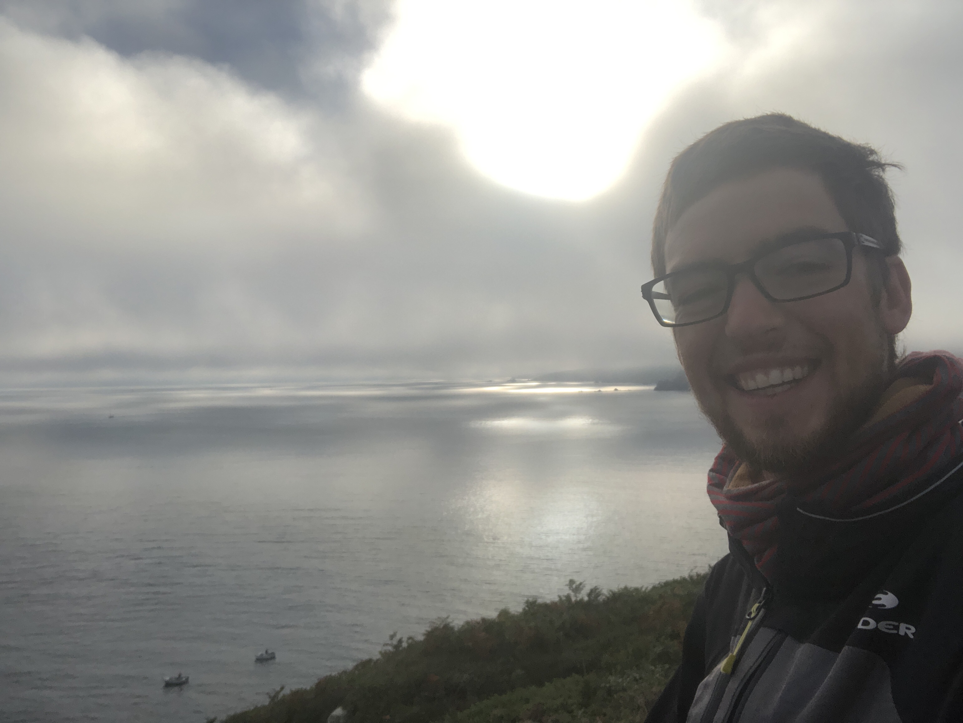 Der nächste Morgen war ein Dienstag und es war eisig kalt in den morgen Stunden! In einer Bar kurz vor Saint Pabu, wärmte ich mich bei 2 Espresso auf und konnte meine Powerbank ein wenig laden! Von Saint Pabu konnte man immer wieder ein Blick auf die Ria werfen und der Blick auf den Hafen in der Morgensonne war wunderbar! Ich konnte leider bisher noch nichts frühstücken und war froh als ich nach 2h aus dem Supermarkt voll gepackt an der Küste saß und endlich was essen konnte! 🙂 Dort lud mich eine Familie, die dort in einem Camper schlief auf einen Kaffee ein und wir plauderten ein wenig. Er war aus der Nähe von St. Malo und flüchtet im Sommer immer vor den „vielen Parisern“. Man merkte ihm sofort an, dass er die nicht leiden kann und erklärte mir wie ich Sie an den Nummernschilder erkennen kann. 😀 Ich musste mich dann verabschieden und aufbrechen, da ich Brest heute noch erreichen wollte. Der Tag hatte heute wieder wunderbare Aussichten zu bieten! Es ging nun entlang der westlichsten Teil der Bretagne und Frankreichs. Der Weg nach Brest ist nicht als Radweg bekannt. Teilweise ist dieser nicht immer ausgewiesen, aus dem Grund, weil es einfach auch sehr anspruchsvoll ist zu fahren, so hat man kleinere Abschnitte Fahrradwege und den Rest entlang der Küstenstraßen. Auch an diesem Tag stand auch der letzte Ria, der 3 an. Es war der „L‘Aber Ildut“ und dieser hatte es nochmal in sich! Ich sammelte bei der Umrundung wieder gründlich Höhenmeter von oben hatte ich aber ein wundervollen Blick auf die Hügellandschaft im Landesinneren und auf das Meer auf der anderen Seite! Den westlichsten Punkt des Festlands von Frankreichs erreichte ich dann, als ich auf die Halbinsel Kermorvan mein Fahrrad abstellte und ein wenig zu Fuß zum Leuchtturm weiterging! Weiter ging es dann über Le Conquest nach Saint-Mathieu. Der Leuchtturm wurde neben einer Abtei erbaut und ist schon mehrere hundert Jahre alt! Weiter im Landesinnern ist noch eine alte Batterie des Atlantikwalls erhalten und als Museum zu besichtigen. Ich habe aber die größte in der Normandie besucht, somit ging es nun nach Brest und der gleichnamigen Bucht. Diese Bucht ist von Natur aus sehr tief und daher ist der Hafen von Brest sehr wichtig! Ein großer Teil dient der Kriegsmarine. Es war sehr beeindruckend! Der Weg nach Brest kam mir persönlich ewig vor! Ich hielt an der nächsten Bar, lud meine Geräte auf und trank ein Kaffee. Die Stammgäste verwickelten mich in ein tolles Gespräch! Sie gaben mir auch die Adresse der Fähre, welche zum Naturschutzgebiet vom Crozon fährt. Leider war diese schon ausgebucht und so fuhr ich bis zum „Ponte de l‘Armorique“ und fand dort einen Zeltplatz auf einer Wiese! 🙂