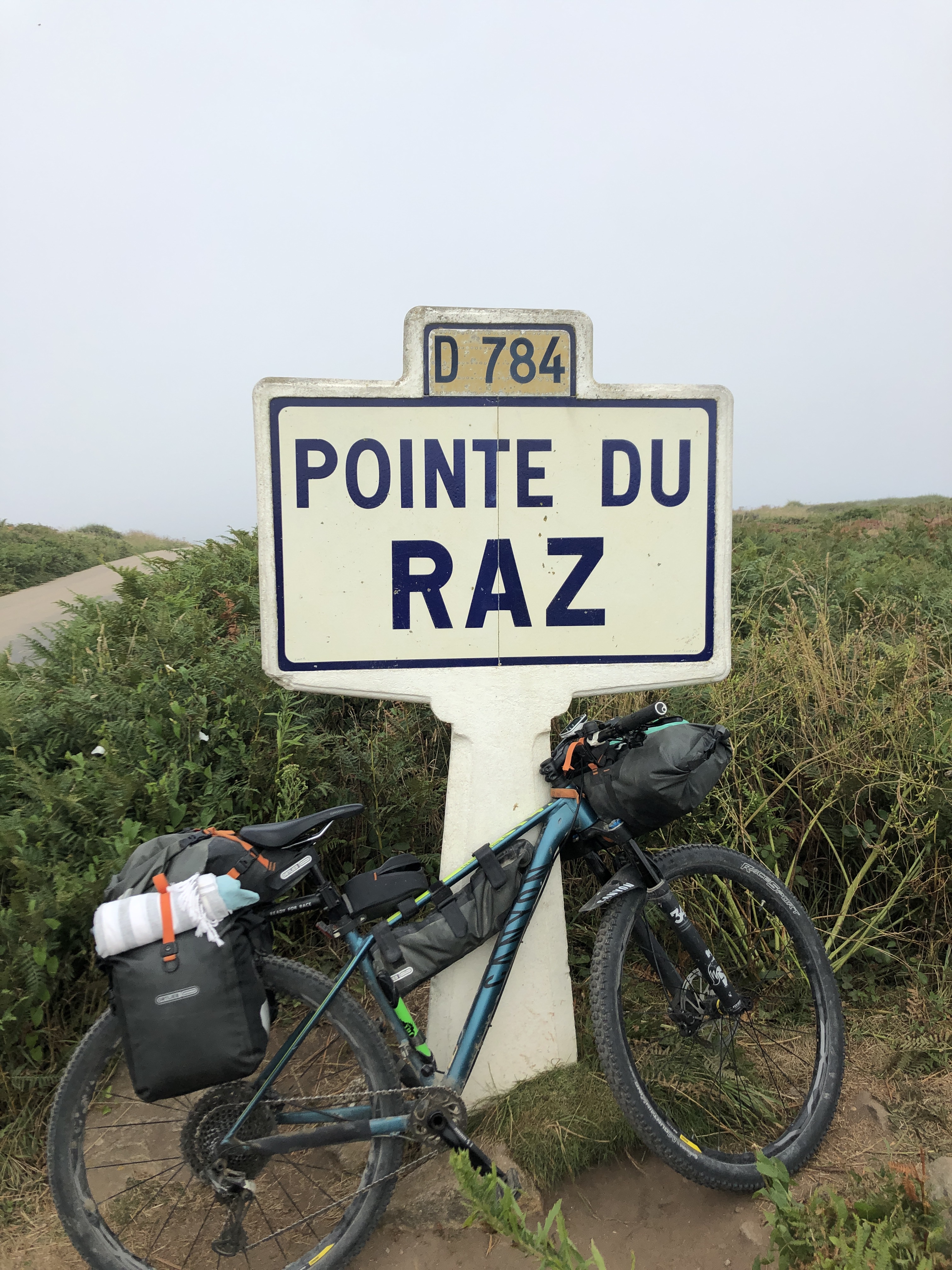Der letzte Tag in der ursprünglichen und sehr speziellen Bretagne begann ich früh um den Sonnenaufgang zu erleben! Es ging als ersten Stopp an den „Pointe de Brézellec“. Es war Nebel in dem morgen Stunden und schon beim hinfahren war die Luft und die ersten Sonnenstrahlen, die durch den Nebel drangen was besonderes! Doch an diesem Ort war es einfach ein klein wenig magisch. Immer wieder kam die Sonnen für einen kurzen Augenblick durch. Danach ging es zum „Pointe de Castelmeur“, der einen Blick auf Brézellec frei gab, alles dahinter verschwand im Nebel. Das Nebelhorn eines Schiffes konnte man deutlich hören, aber es selber nicht. Doch die beiden bekanntesten sollten nun folgen. Ich hatte mir in der Früh, während ich das Zelt abbaute einen Kaffee gekocht und in meine kleine Thermoskanne umgefüllt, so konnte ich den Blick immer mit einem Schluck Kaffee genießen! Der « Pointe du Van » hat seinen speziellen Reiz wegen der Kapelle und eigentlich kann man den « Pointe du Raz » von dort aus schon sehen. Das Blumenmeer aus rosa und gelb, welche vom Tau noch nass waren leuchteten bei den kurzen Sonnenstrahlen. Zum letzten Mal sollte ich diese schönen Orte in der Bretagne sehen! Einer der Gründe, warum ich wieder zurück will in der Zukunft!!! Da es sehr früh war, war ich fast alleine an diesen Orten. Am Fuße des « Cap du Raz » machten sich die ersten Surfer startklar – es war kurz vor 9 Uhr – doch am Cap selber war alles in Nebel verhüllt und so konnte man den Leuchtturm und die Spitze leider nicht sehen. Aber das Meer hat hier mehr Wucht als an den anderen Orten. Man hörte es ganz deutlich gegen die Felsen schlagen! Als zweites Frühstück und zum aufladen meiner Elektronik, ging es in ein Café um 2 Crêpes und einen Kaffee zu genießen! Ich nutze dies um einfach mal die Eindrücke es sacken zu lassen. Der Vormittag war fantastisch und fand mit diesem Frühstück ein guten Schlusspunkt! Danach ging es, am Anfang noch mit steilen Passagen, entlang der Küste. Das Ziel war heute Bénodet. Es ging durch die tollen Küstendörfer und die Hafenstadt « Audierne ». Es wurde Abend und ich machte 30km vor Bénodet einen Stopp, da ich in der Nähe des Fahrradweges auf einem kleinen Campingplatz, fernab von Touristen, meine Ruhe fand. Es gab hier eine sensationelle, frisch gemachte Pizza für nur 8€! Das ist günstig für Frankreich und mit einem bretonischen Bier « Lancelot », schmeckte es umso besser!