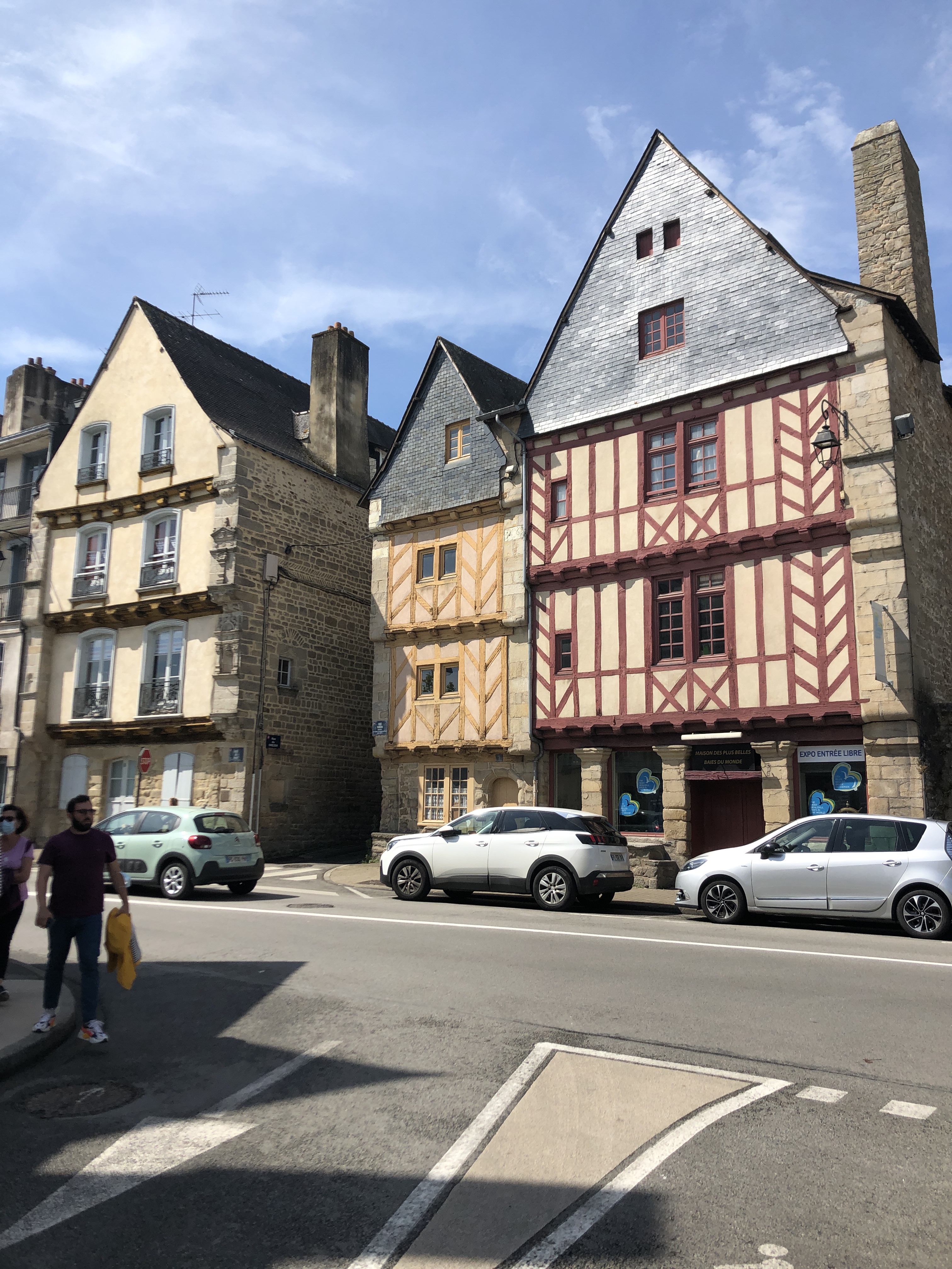 Von Lorient ging es nun weiter in Richtung Süd-Osten. Die ursprüngliche Bretagne war nun schon lange hinter mir und die Strände waren voller Touristen. Um in Lorient den Fluss „Le Blavet“ zu überqueren, muss man eine Fähre vom Hafen nach Locmiquélic nehmen. Da Montag war, hatten noch einige Bäckereien zu, da diese Sonntags oft den ganzen Tag auf haben, sind die meisten am Montag zu. In Locmiquélic konnte ich in einer Bar einen Kaffee trinken, aber auch hier gab es nichts zum frühstücken. So fuhr ich bis nach Plouhinec um für mein Frühstück in einer Boulangerie zu halten. Es ist teilweise echt krass wie lange die Schlangen immer sind, nur für den Kauf von einem Baguette stehen die Leute gerne mehrere Minuten an. Ich musste nun die beiden Flüsse „Rivière d‘Etel“ und „Rivière d’Auray“ überqueren um zum „Golf von Morbihan“ zu gelangen, welchen ich an diesem Tag umfuhr. Das Wort „Mor bihan“ kommt aus dem Bretonischen und bedeutet „kleines Meer“, nach dem auch die Region benannt ist. Die Bucht hat mehrere kleine Inseln und die berühmte Hafenstadt „Vannes“ zu bieten. Die Stadt hat einen schönen Hafen und einige tolle Fachwerkhäuser. Da ich mir aber von Einheimischen sagen lassen habe, dass diese Stadt sehr teuer ist und vor Allem viele Pariser dort Urlaub machen, habe ich mich nicht lange dort aufgehalten und bin wieder raus in die Natur. Man kann mit dem Fahrrad bis zur Spitze nach „Port Navalo“ fahren, wo sich der Eingang zur Bucht befindet. Ich entschied mich, diese Sackgasse nicht mit zu nehmen und fuhr weiter in Richtung des Städtchens „Arzal“, welches am Fluss „La Vilaine“ liegt. Diesem habe ich überquert und bis zur Mündung ins Meer entlang gefolgt. Dort am Meer habe ich leider total den Mangel an Supermärkten und Bars unterschätzt. So lief ich Gefahr ohne Wasser und somit ohne Essen schlafen zu gehen. Ich suchte mir den nächsten Campingplatz. Die wollten von mir 27€ für einen Zeltplatz ohne Strom, da ich kurz vor der Schließung der Rezeption da war, verhandelte ich auf 17€, was immer noch teuer ist für einen Schlafplatz… Naja, selbst Schuld!!
