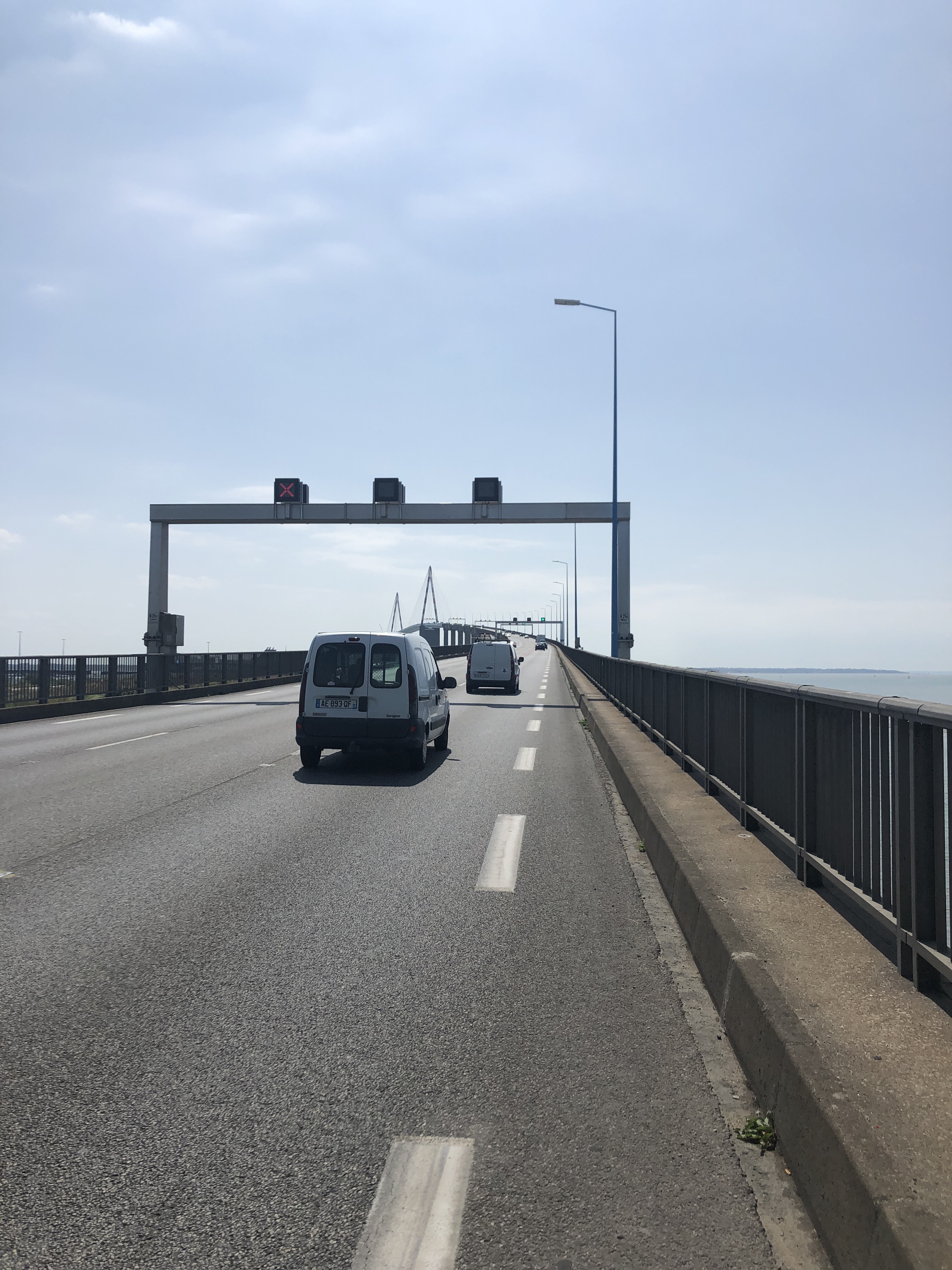 Der nächste Tag war mit einem großen Schritt versehen. Es sollte nämlich bei Saint-Nazaire definitiv in Richtung Süden gehen, wenn ich die Loire überquere und wenn man nach den Bretonen geht, auch die Bretagne. Bis kurz vor La Rochelle geht zwar die Bretagne, aber die meisten sagen, dass alles südlich von Nantes nicht mehr dazu gehört. Es ging also in den frühen Morgenstunden los durch die „Marais Salants du Mes“. Eine „Marais“ sind die Gebiete die vom Meer immer wieder überflutet werden und somit neben eine wunderschönen Natur auch oft zur Salzgewinnung oder für das Sammeln von Austern verwendet werden. Nach einer kurzen Strecke entlang am Meer ging es durch die berühmten „Marais du Guérande“, diese sind bekannt für die vielen Salinen und somit für ihr Salz. An vielen kleinen Höfen oder Verkaufsstände kann man Salz und andere Produkte wie Honig kaufen. Die Fahrt durch die „Marais“ ist sehr einfach, da es durchgehend flach ist. Das besondere hier war, dass man wirklich zwischen den Salinen fuhr. Die Stadt Guérande thront sozusagen vor den gleichnamigen Salinen und hat eine Altstadt zu bieten, die von einer Festungsmauer umgeben ist. Dort angekommen sah ich ein tolles Café und genoss „Scones“ mir Marmelade und einen „Mango/Ingwer-Smoothie“. Es war gegen Mittag und das war nun mein zweites Frühstück, bevor es zu diesem gewaltigen Schritt über die Loire ging. In meinem Kopf spielte sich einiges ab und ich schaute auf meinen Helm und den Sticker der Bretagne und konnte genau erkennen, wo ich bin und wo es hin gehen wird. Ein verrücktes Gefühl zu wissen, dass es in den Süden geht!!! Das Café wurde von einem jungen Paar geschmissen und ich durfte meine Sachen aufladen und wir kamen auch kurz ins Gespräch. Sie machten mir Mut evtl. doch nach Spanien zu fahren. Mal sehen wie es kommt! Ich denke oft darüber nach und mache mich teilweise verrückt um ein paar Minuten später wieder zu sagen „Jetzt warte doch erst einmal ab.“ Die Fahrt nach Saint-Nazaire war unspektakulär und somit fand ich mich sehr schnell auf der großen Brücke, welche über die Mündung verläuft. Angekommen auf der anderen Seite setzte ich mich erst einmal und musste begreifen, was ich bisher geleistet habe und wo ich nun bin! Die Mittagspause war hier an diesem Ort genau richtig um es zu realisieren! Solche Momente muss man zulassen und sich wirklich die Zeit nehmen. Genau jenen Moment werde ich nie mehr vergessen, der ist tief eingebrannt! An diesem Tag durfte ich spontan bei einer Warmshower Gastgeberin Emmanuele übernachten in St. Michel Chef Chef. Tatsächlich ist das wirklich der Ort, wo die kleinen Kekse herkommen, welche du in Frankreich immer zum Kaffee bekommst. Ich entspannte am Strand und wir machten uns abends Galette (dunkler Crêpes mit etwas herzhaften) und zum Dessert gab es dann Crêpes. 🙂 Auch wenn die Bretagne hier eigentlich nicht aufhört, wird hier der Beitrag enden.