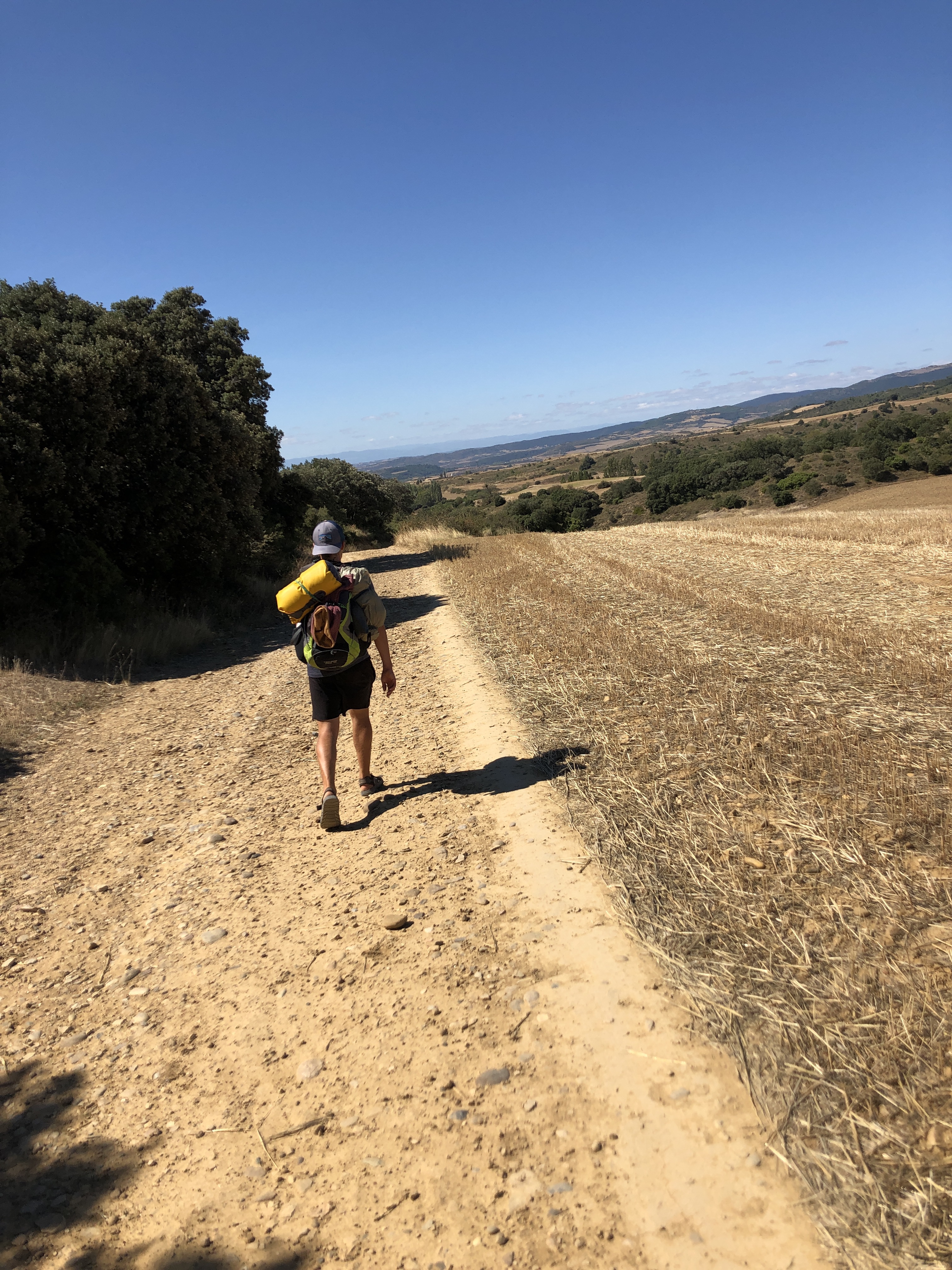 Am 21. August entschied ich mich den Jakobsweg zu gehen, wie ich es auch kurz in einem Eintrag erwähnt habe. Er hatte einige Rechtschreibfehler, dafür möchte ich mich schon einmal entschuldigen. Das Korrekturlesen kam hier zu kurz… 😀 Ja, zurück zum Jakobsweg. Wie Ihr im Betreff schon herauslesen könnt traf ich hier eine wegweisende Entscheidung, denn ich lies mein Fahrrad zurück und bestellte meinen Rucksack, Wanderschuhe und Stöcke. Voller Motivation und Freude auf das Wandern ging es über die Pyrenäen nach Spanien. Ein Land, das ein kompletter Tapetenwechsel für mich war. Hier, wo sonst Hunderte Menschen aus verschiedenen Ländern und Kontinenten an das eine glauben und den Weg zusammen gehen, ist es leer und ich übertreibe nicht, wenn ich sage, dass nur noch der typische Einspann in einem Westernfilm mit einer Windrose gefehlt hat. Diese Szene, wenn ein Revolverhelden in ein Dorf reitet und alle sich im Haus einschließen. Umso weiter ich mich von den Pyrenäen und Navarra entfernte war dies so. Ich traf zwar hier und da mal einen Pilger und konnte mit Norbert (58) aus dem Allgäu ein paar Tage zusammen laufen, aber wie oft war ich alleine oder wir zu zweit in einem Matratzenlager untergebracht… Die Menschen sind herzlich, aber man merkt ihnen an, dass die Pilger und somit das Geld fehlt. In jedem Ort hat mindestens eine Herberge geschlossen und jede hat die Preise erhöht und selten bekommt man ein gemeinsames Abendessen. Dieser Flair, der diesen Weg ausmacht ist durch Corona leider ausgelöscht, dass kann man wirklich so sagen. Einzelne Menschen probieren die Flamme am Leben zu halten und genau die sind es, die für mich den Jakobsweg geprägt haben und auch diese Reise bereichert haben. Nach den ersten beiden Tagen in den Pyrenäen war ich begeistert von der Natur. Auch später noch, waren die Ausblicke auf die Bergketten in Spanien sehr schön. Leider ging mir persönlich der Weg zu sehr an belebten Straßen entlang, teilweise sogar an Autobahnen. Wie Ihr schon merkt spreche ich vom Jakobsweg in der Vergangenheit. Ja, ich habe ihn im Burgos nach 200km verlassen. Warum?